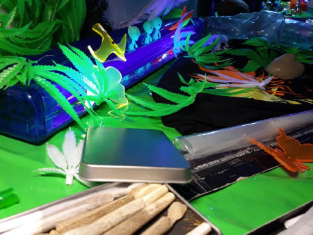 Die Ausstellung ist beleuchtet und mit kleinen Lichteffekten ausgestattet, um ansatzweise die schillernden Konsumwelten widerzuspiegeln. Vorzugsweise in dunklen Räumen aufgebaut, entfaltet sie besonders ihre visuelle Wirkung. Die jahrelange Erfahrung zeigt, dass "Kiffer's paradise" nicht nur die Glaubwürdigkeit meiner Aussagen stärkt, sondern auch Vertrauen aufbaut, da alles angefasst werden darf und soll. Ergänzt werden kann die Ausstellung an sich durch einen Monitor, an dem interessengeleitet medial unterstützt Fragen Antworten erhalten können.